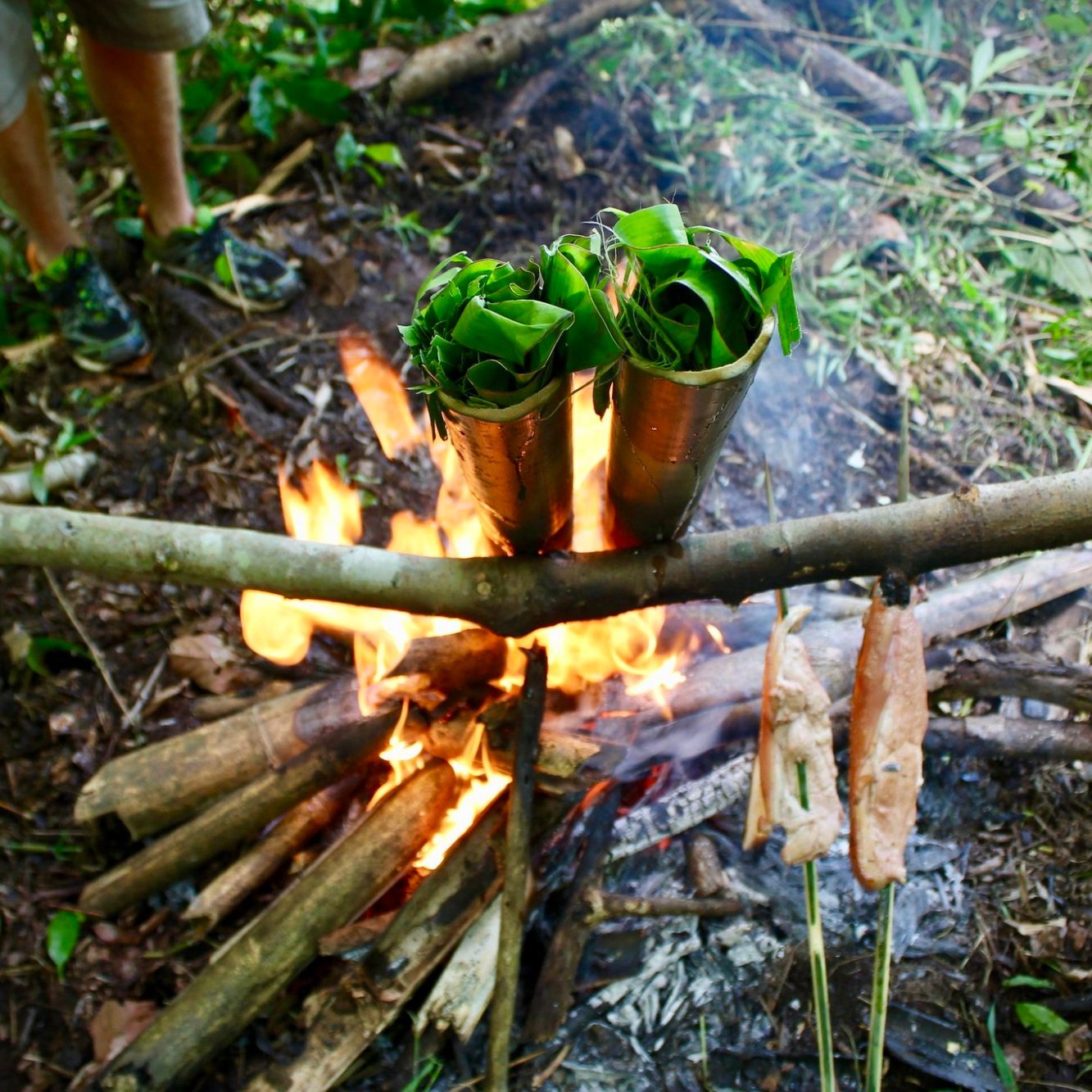 Survie en jungle tropicale : allumer un feu sans briquet, purifier l’eau, construire un abri, cuisiner avec les moyens du bord.